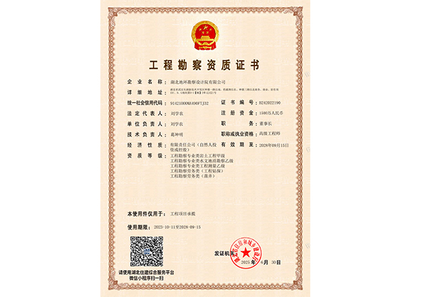 工程勘察资质证书(湖北地环勘察)
