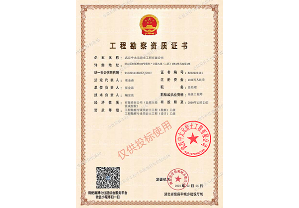 工程勘察资质证书(武汉中元太)